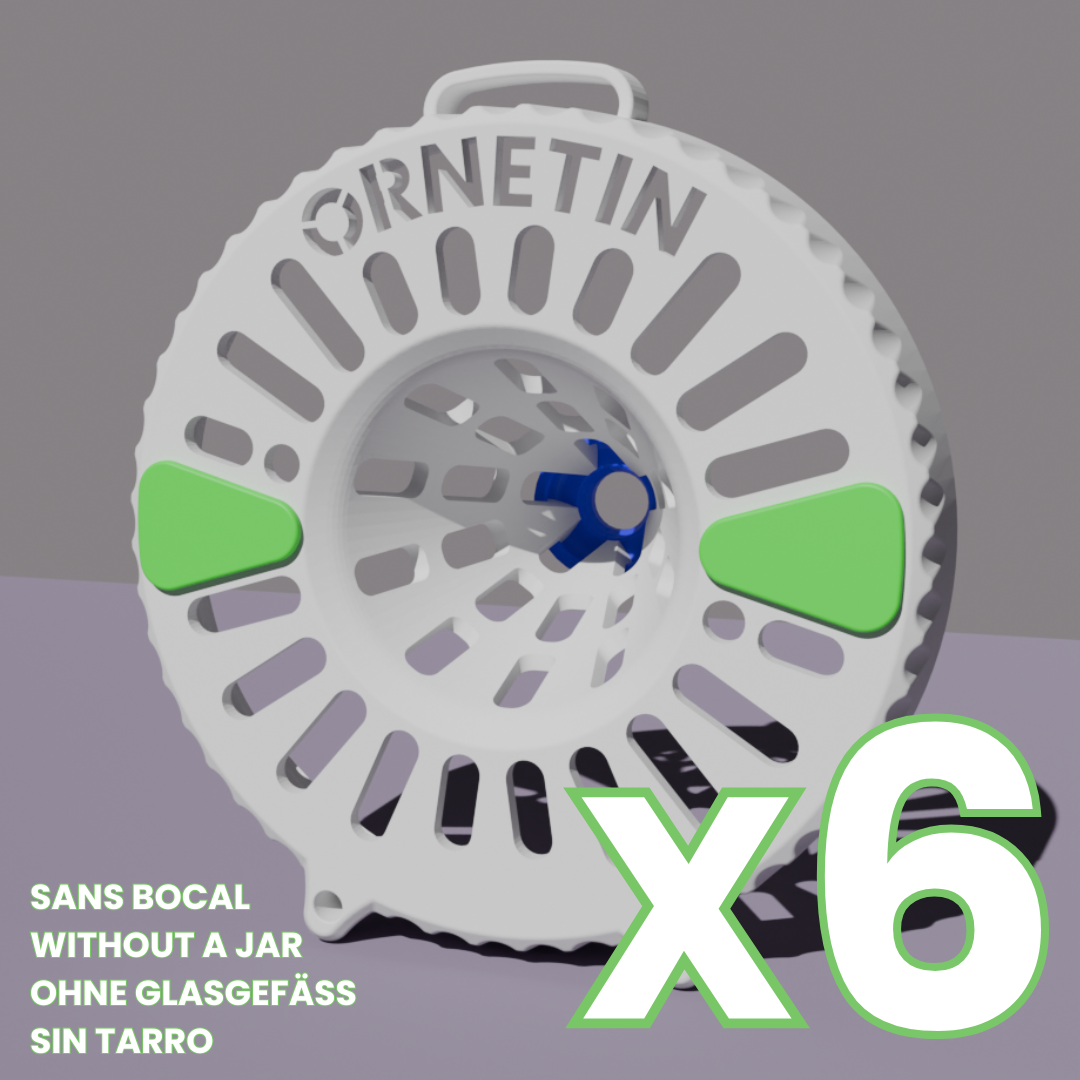 Le nouveau piège Ornetin UV s’appuie sur le modèle éprouvé de 2021 et introduit une innovation majeure : une surface réfléchissante aux UV qui rend le piège hautement visible pour les frelons. Grâce à cette amélioration visuelle, les frelons — en particulier les reines fondatrices au printemps — sont plus susceptibles de repérer le piège à plus grande distance.
